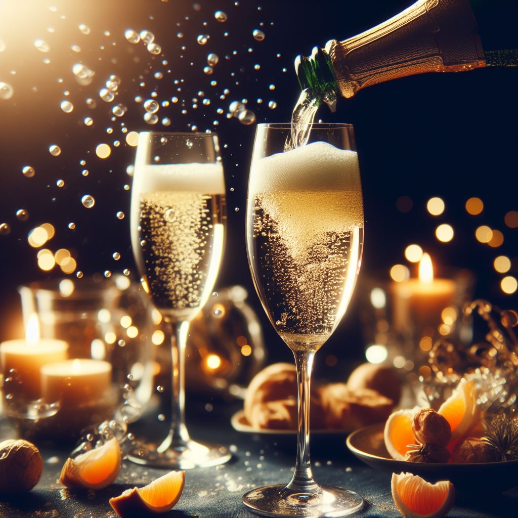 - As the champagne was poured into the glass, bubbles of foam danced on the surface.